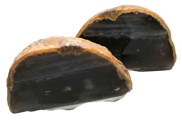Achátová pecka rozříznutá, vyleštěná. Dostaneto přesně tyto dvě půlky.