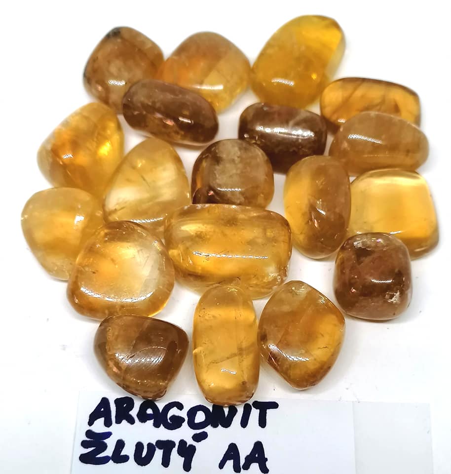 Aragonit žlutý, tromlovaný v AA kvalitě.