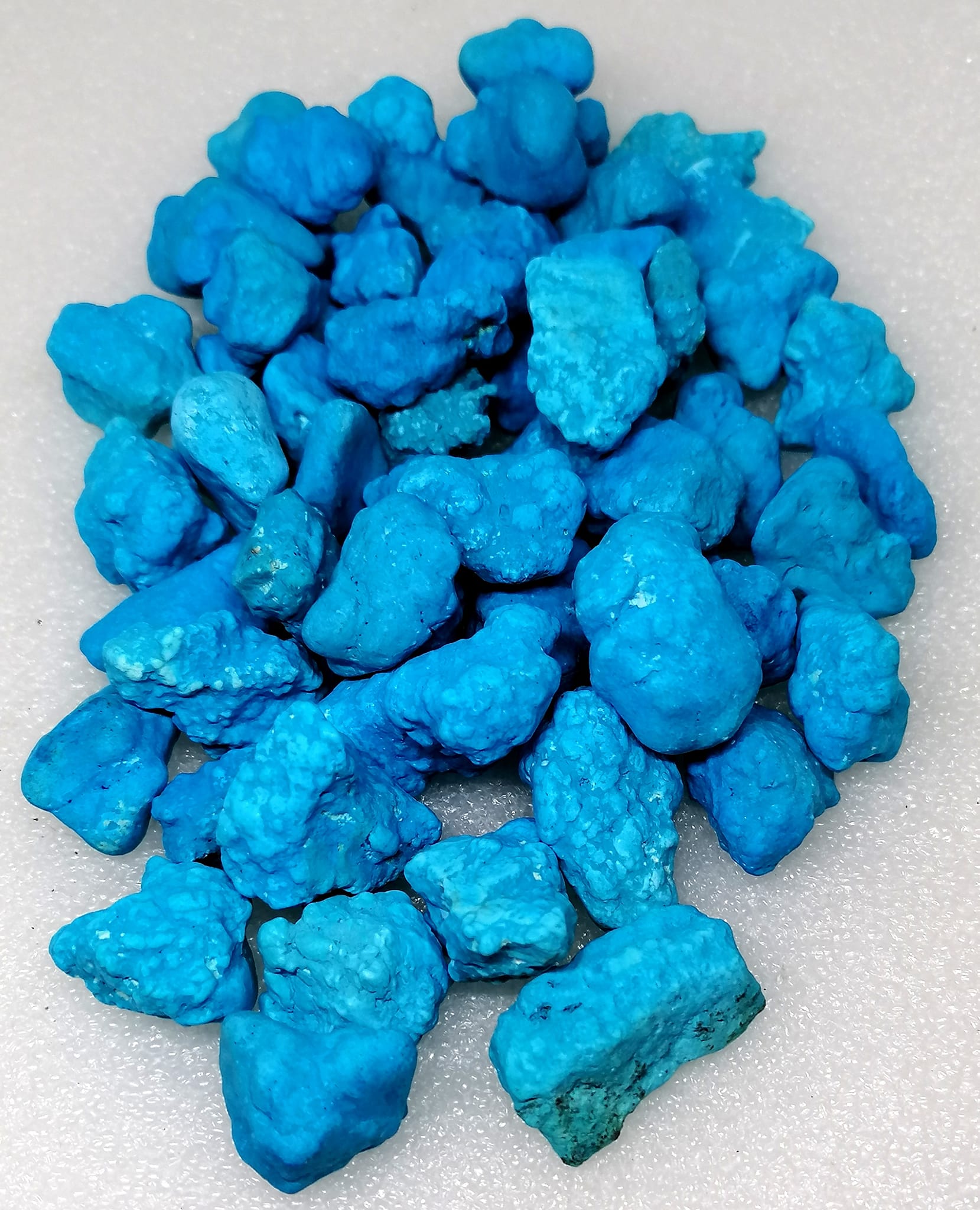 Magnezitové oblé kousky barvené / barva tyrkenitu/.