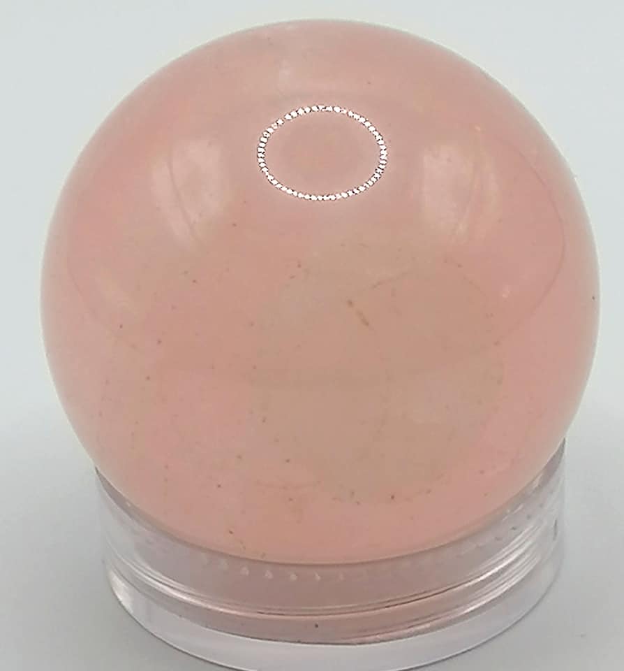 Růženínová koule o průměru cca 2,6cm. Váha této koule je 30,3 g. Je maličko průhledná, takovému růženínu se říká sférický.
