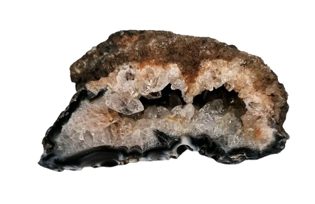 Tento nádherný achát pochází z Brazílie, oblasti známé svými kvalitními přírodními minerály s výraznými léčivými účinky. Váha této geody je 120 gramů a její rozměry jsou 8 x 3,8 x 4 cm, což z ní činí výrazný a zároveň praktický kousek pro sběratele i milovníky minerálů.