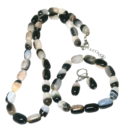 - Achát sada náhrdelník, náramek a naušnice s ocelí