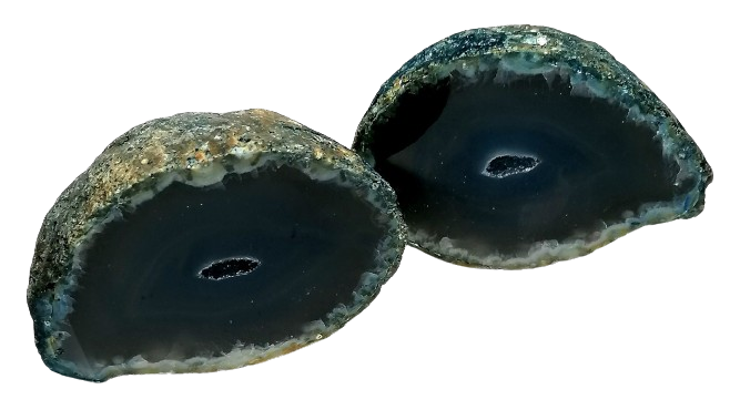 Achátová pecka rozříznutá, vyleštěná. Dostaneto přesně tyto dvě půlky.