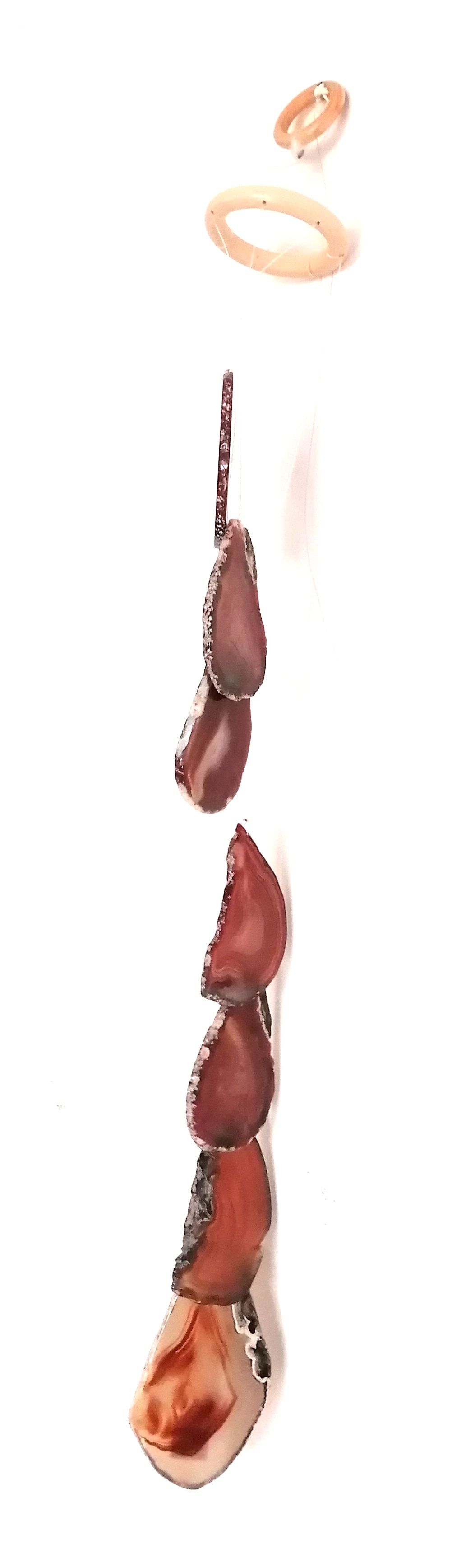 Vneste do svého prostoru klid, energii a ochranu pomocí achátové zvonkohry z přírodních plátků kamene. Tato originální hnědá zvonkohra z achátu je tvořena 7 přírodními achátovými plátky o velikosti cca 6–8 cm, které jsou zavěšeny na pevném provázku. Nahoře se nachází dřevěný kroužek pro snadné zavěšení. Celková délka zvonkohry je přibližně 65–70 cm. Obdržíte přesně tuto konkrétní zvonkohru, která je jedinečná svým zbarvením i kresbou kamene.