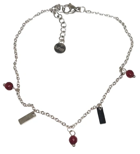 Náramek na nohu z chirurgické oceli, kde najdete 3 korálky z červeného achátu.