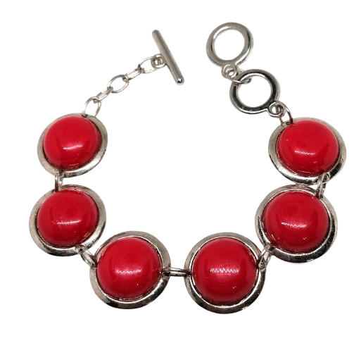 Stylový bižuterní náramek s červenými kolečky je výrazným módním doplňkem, který dodá každému outfitu energii a šmrnc. Sytě červená barva působí žensky, sebevědomě a živě, zatímco lehká konstrukce z bižuterních materiálů zajišťuje příjemné nošení po celý den.