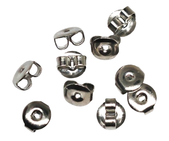 Zapínání je vyrobeno z kvalitního bižuterního kovu, který je odolný a vhodný pro běžné nošení. Motýlky na náušnice patří mezi nejpoužívanější komponenty při tvorbě bižuterie.