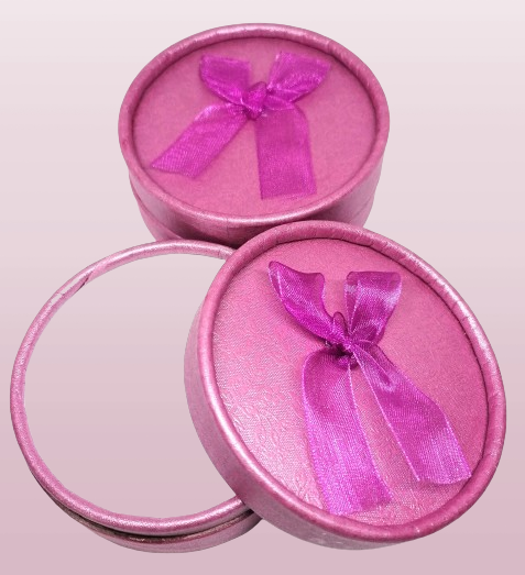 Dárková krabička na šperk, kulatá, fialová.