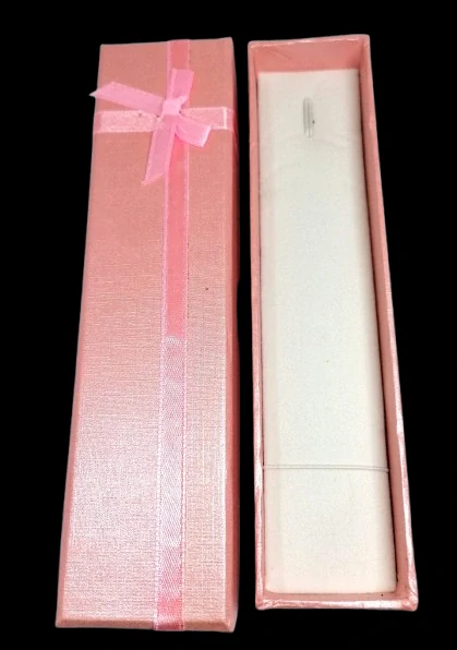 V barevném provedení s mašličkou. Uvnitř vložka z flokovaného molitanu s výřezy, které umožňují snadné usazení šperku. Papírová krabička je vhodná na náramek, řetízek, náhrdelníky.