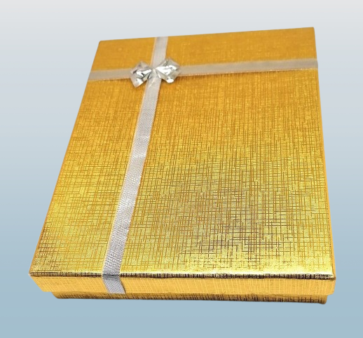Elegantní dárková krabička na šperky ve zlaté barvě je ideální volbou pro luxusní a vkusné zabalení šperků. Jednobarevné provedení s ozdobnou mašličkou působí slavnostně a reprezentativně, díky čemuž je krabička perfektní pro dárkové balení při jakékoliv příležitosti.