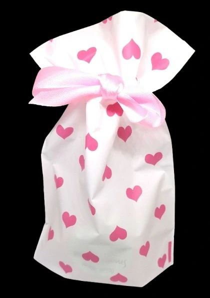 - Dárkový sáček se srdíčky s atlasovou stuhou