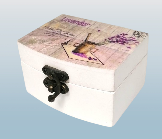 Truhlička s motivem levandule je elegantní dekorativní šperkovnice určená pro uložení drobných šperků, talismanů a osobních pokladů. Díky kompaktním rozměrům 9 × 7 × 5 cm se hodí na noční stolek, toaletní stolek nebo pracovní stůl a snadno zapadne do každého interiéru.