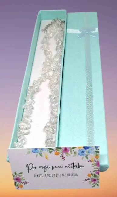 Krásné dárkové balení pro paní učitelku - křišťálový náhrdelník.