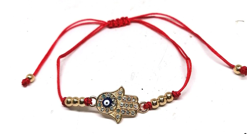 Stylový červený provázkový náramek s přívěskem ruky Fatimy (Hamsa) z bižuterního kovu je nejen krásným doplňkem, ale také silným ochranným symbolem. Hamsa chrání před zlým okem, přináší štěstí, zdraví a pozitivní energii.