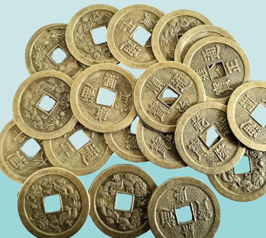 Tradiční čínské mince jsou symbolem bohatství, úspěchu a štěstí.
