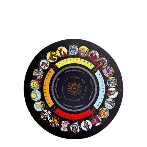 Objevte sílu intuice a duchovní komunikace s Jasnovidoucí deskou Ouija pro práci s kyvadlem, navrženou pro hlubokou duchovní meditaci, věštění a esoterickou praxi. Tato černá dřevěná kyvadlová deska o průměru cca 20 cm je zdobena mystickými vzory, symboly tarotových karet, čísly od 1/A do 10 a výraznými odpověďmi ANO a NE, které pomáhají nasměrovat energii při výkladu i při komunikaci s vyšším vědomím.