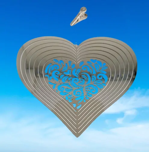 Motiv srdce je v esoterice a feng shui vnímán jako symbol bezpodmínečné lásky, citového propojení, jemnosti a otevřenosti. Zavěšená spirála se ve větru jemně otáčí a tím rozpohybuje stagnující energii, pročistí prostor a napomáhá harmonii vztahů, sebeúctě i hlubšímu porozumění.