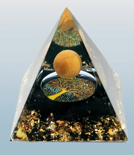 Orgonitová pyramida obsidiánová se stromem života a kuličkou z tygřího okaihned 1 ks349 Kč/ ks288 Kč bez DPH
