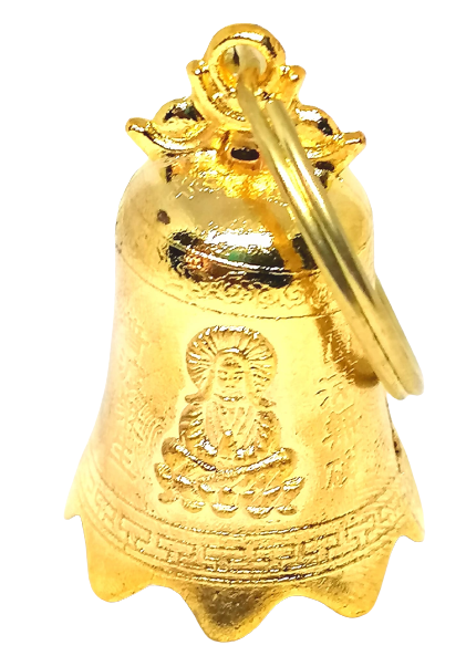 zvonek štěstí, zlatý zvonek štěstí, feng shui zvonek, esoterický talisman, amulet pro štěstí, harmonizace prostoru, očista energií, pozitivní energie, feng shui dekorace, zvonek z Indonésie, dárek pro štěstí, duchovní dárek, zvonek pro harmonii, energetický předmět, amulet feng shui, dekorace pro domov