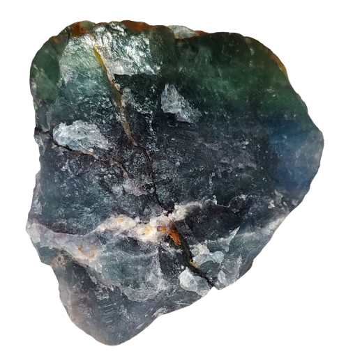 Tento duhový fluorit zaujme kombinací sytých odstínů fialové, zelené a bílé, a to v unikátní krystalické struktuře. Vzniká v hydrotermálních žilách a jeho krystalická forma je oblíbená nejen mezi sběrateli, ale i příznivci esoteriky a feng shui.