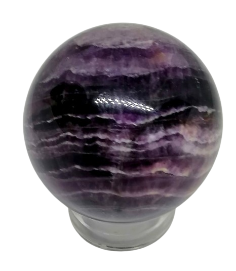 Tato fluoritová koule v exkluzivní kvalitě má průměr cca 4,7 cm a váží přibližně 168 g. Kupujete přesně tuto kouli z fotografie. Zaujme svým tmavším odstínem a krásným pruhováním, které je pro fluorit typické – jemné přechody fialových tónů vytvářejí harmonický vzhled.