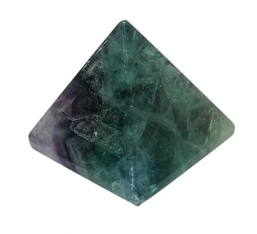 Fluorit je známý jako kámen jasnosti a ochrany, který pomáhá pročistit mysl, zvyšuje koncentraci a podporuje duševní rovnováhu. Díky svým jedinečným barevným odstínům, od fialové přes zelenou až po modrou, působí i jako silný energetický čistič prostoru, harmonizuje okolní energii a navozuje pocit klidu a pořádku. Fluoritové pyramidy jsou výjimečné díky svému tvaru – pyramida funguje jako biozářič, který dokáže soustředit a zesílit energii kamene a zároveň harmonizovat čakry a energetická centra těla.