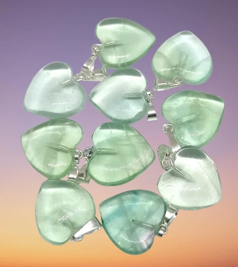 Fluoritové srdíčko, přívěsek tromlovaný v AA kvalitě a tyto jsou vytříděné, jen zelený fluorit.