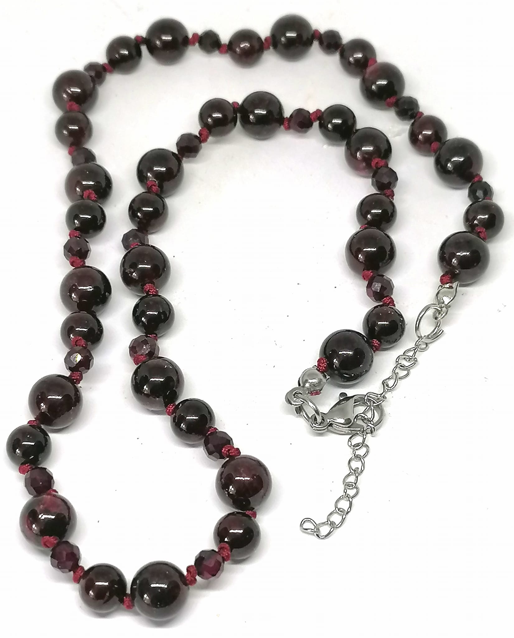 Exkluzivní náhrdelník z přírodního granátu pocházejícího z Indie je určen pro ty, kteří mají rádi výrazné, elegantní a kvalitně zpracované šperky. Granát vyniká svou hlubokou vínově červenou barvou, která symbolizuje energii, sílu a vášeň.