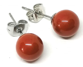 Jaspis červený naušnice 8 mm chir. ocelihned 1 ks105 Kč/ ks87 Kč bez DPH