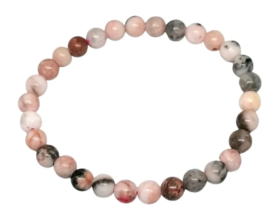 Elegantní náramek z růžového zebra jaspisu s kuličkami o průměru 6 mm je symbolem harmonie, klidu a vnitřní síly. Tento přírodní kámen vyniká svou krásnou kresbou v odstínech růžové, bílé a šedé – připomínající jemné zebrí pruhy, které dodávají náramku jedinečný a ženský vzhled.
