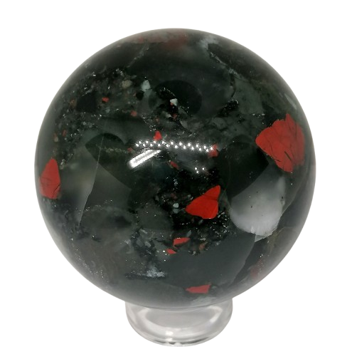 Exkluzivní koule z přírodního heliotropu o průměru 6,6 cm a váze 408 g. Tento minerál, známý také jako krvavý jaspis (bloodstone), je ceněn pro svou tmavě zelenou barvu se skvrnami v červených odstínech. Jde o kámen s bohatou historií, který byl už ve starověku považován za ochranný a léčivý. Koule z heliotropu vyniká nejen svým vzhledem, ale i silnými esoterickými účinky.