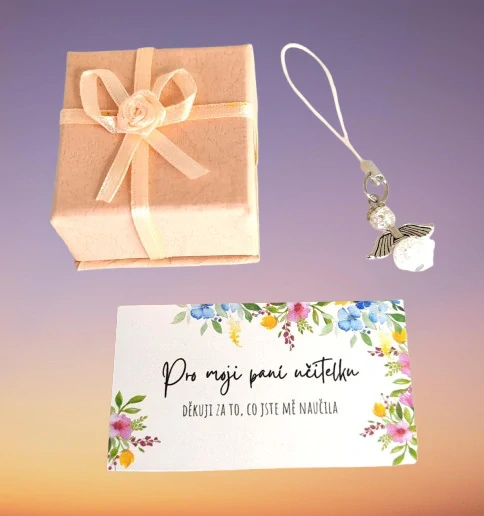 - Dárek pro učitelku – andělíček z pukaného křišťálu s poutkem na klíče, kabelku