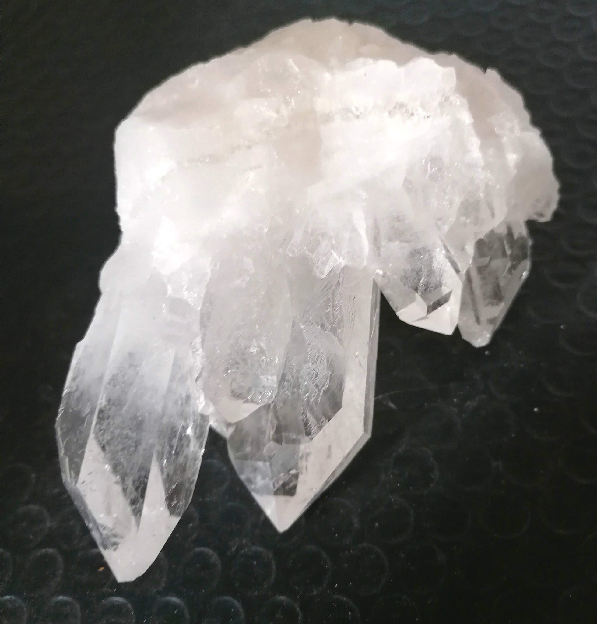 Tato čistá, křišťálová drůzička o váze 285 g a rozměrech cca 9,5 × 7,5 × 5,5 cm je jedinečný energetický kámen ve Feng Shui, esoterice i meditaci. Vedle velkého hrotu jeden hrot chybí.