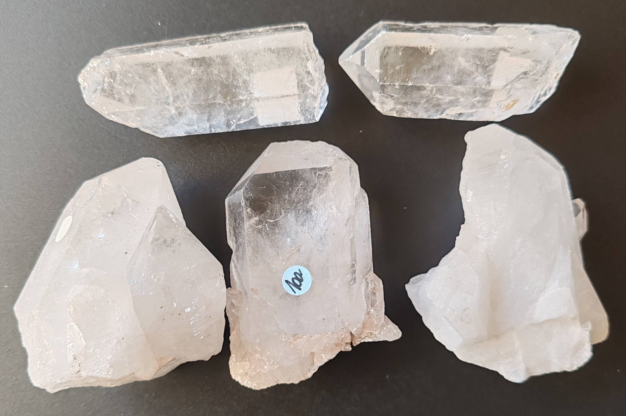 Tato sada č. 4 obsahuje pět přírodních křišťálových špic pocházejících z brazilských nalezišť, která jsou známá produkcí kvalitních krystalů křemene. Krystaly mají přirozené krystalové zakončení a typický přírodní vzhled, díky kterému jsou atraktivní pro sběratele minerálů, dekorativní účely i esoterické využití.