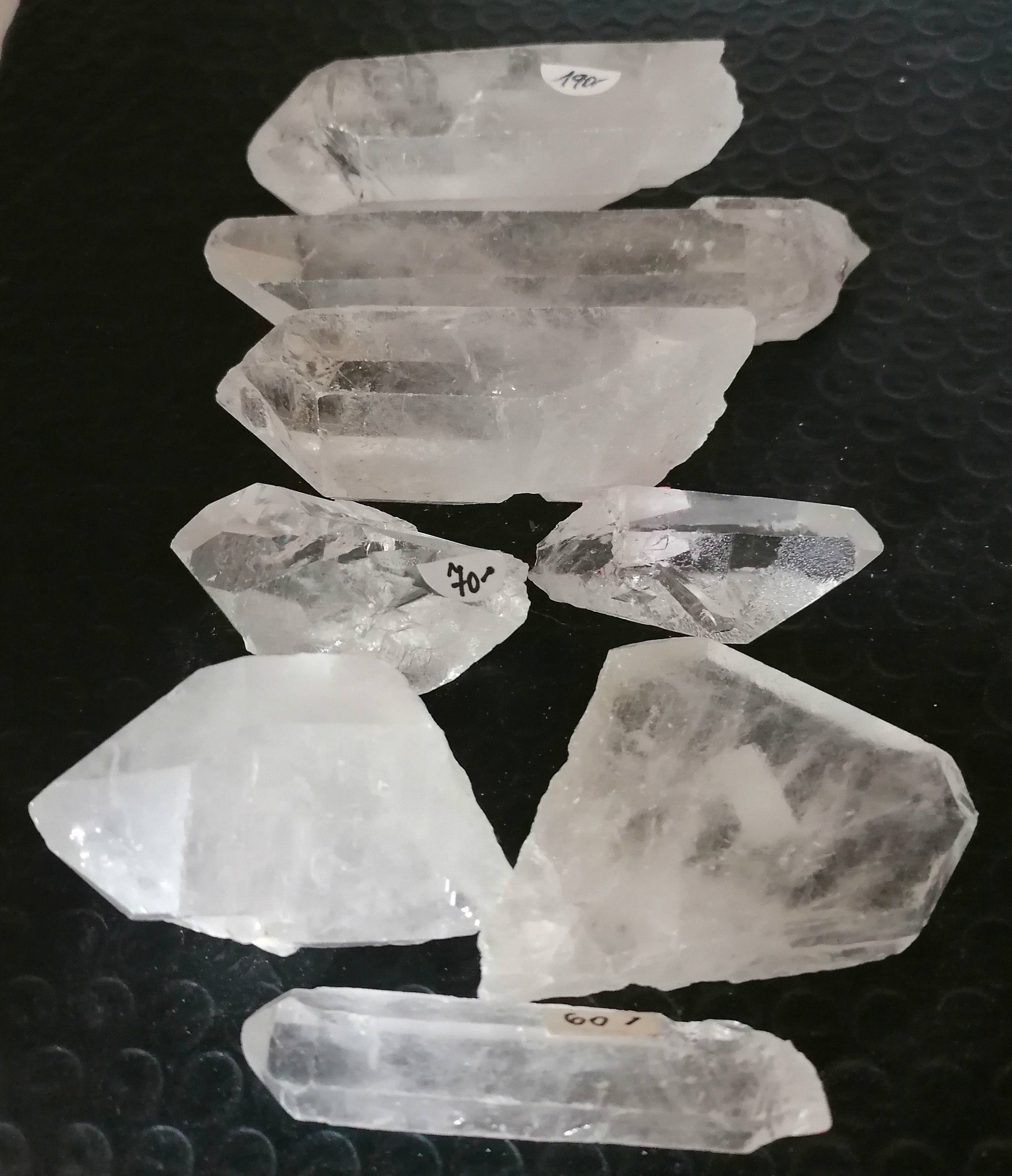Objev sílu a krásu čistého křišťálu. Tato sada 8 neupravených špic, částečně čistých, o celkové hmotnosti 442 g pochází z kvalitních brazilských nalezišť. Každý krystal je originál – jedinečný svým tvarem, vysokou čistotou i silnými vibracemi.
