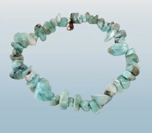 Objevte kouzlo larimaru, jedinečného polodrahokamu s mystickým původem, známého také jako Delfíní kámen nebo Kámen bohů. Tento nádherný náramek je ručně navlečen z nepravidelných sekaných kousků v AA kvalitě, které zachycují různé odstíny mořsky modré až tyrkysové. Obvod náramku je přibližně 18,5–19 cm – ideální pro každodenní nošení i duchovní práci.