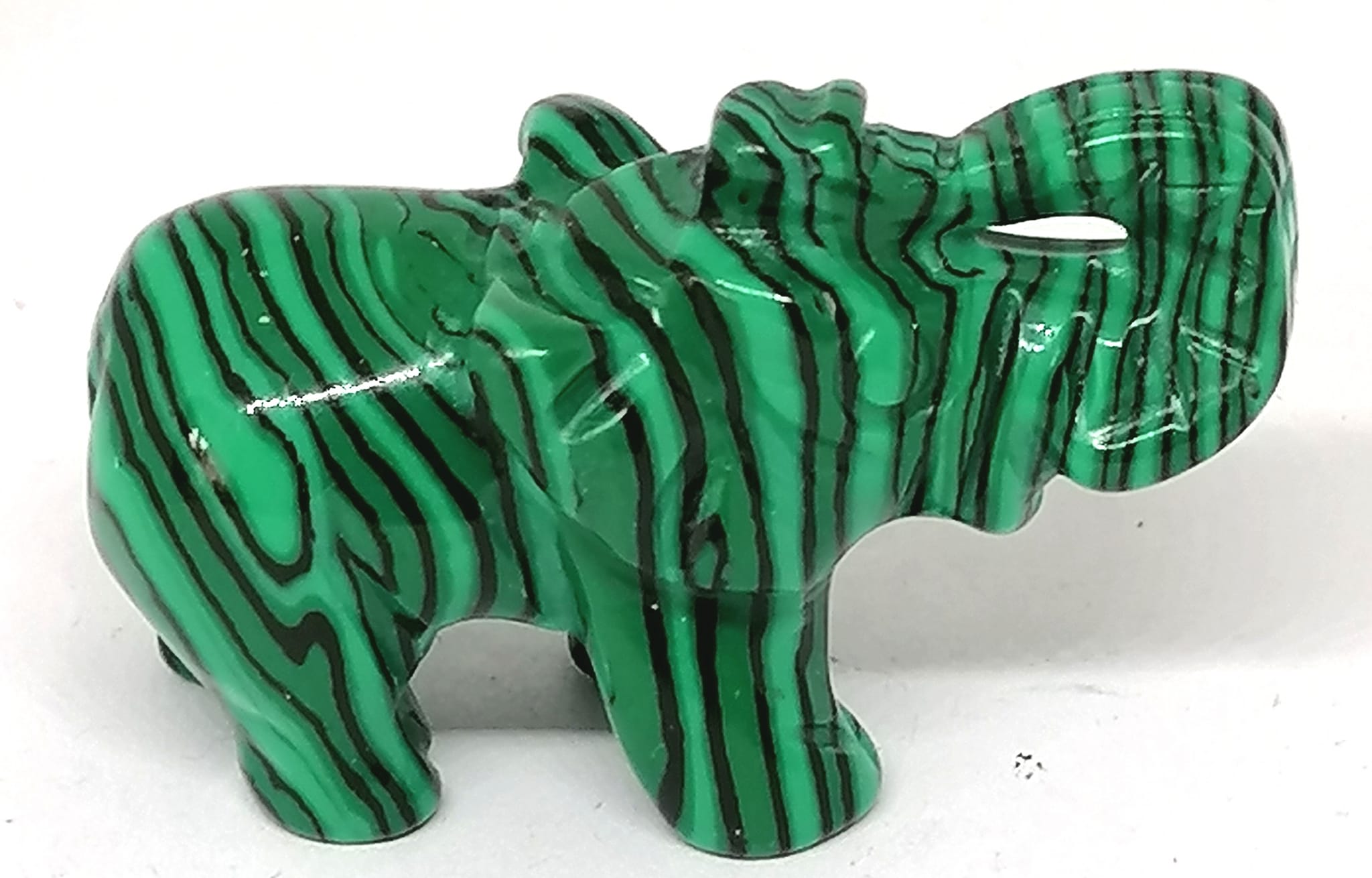 Slon pro štěstí ze syntetického malachitu – minerální figurka (ilustrační foto)
