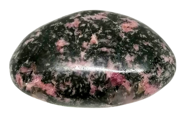 Tento jemně růžový až malinově červený minerál s černými žilkami působí velmi harmonicky i esteticky. Díky svému hladkému povrchu je příjemný na dotek a vhodný i pro reflexní masáž rukou nebo energetickou práci.