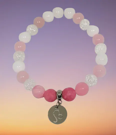 Náramek je z pukaného křištálu, jadeitua růženínu. Náramek je doplněn přívěskem se znamením z chirurgické oceli přesně k tomuto znameni.