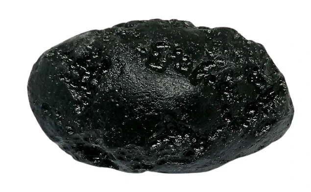 Tektit - meteorit. Jde o velký kus, ve tvaru nepravidelného oválu.