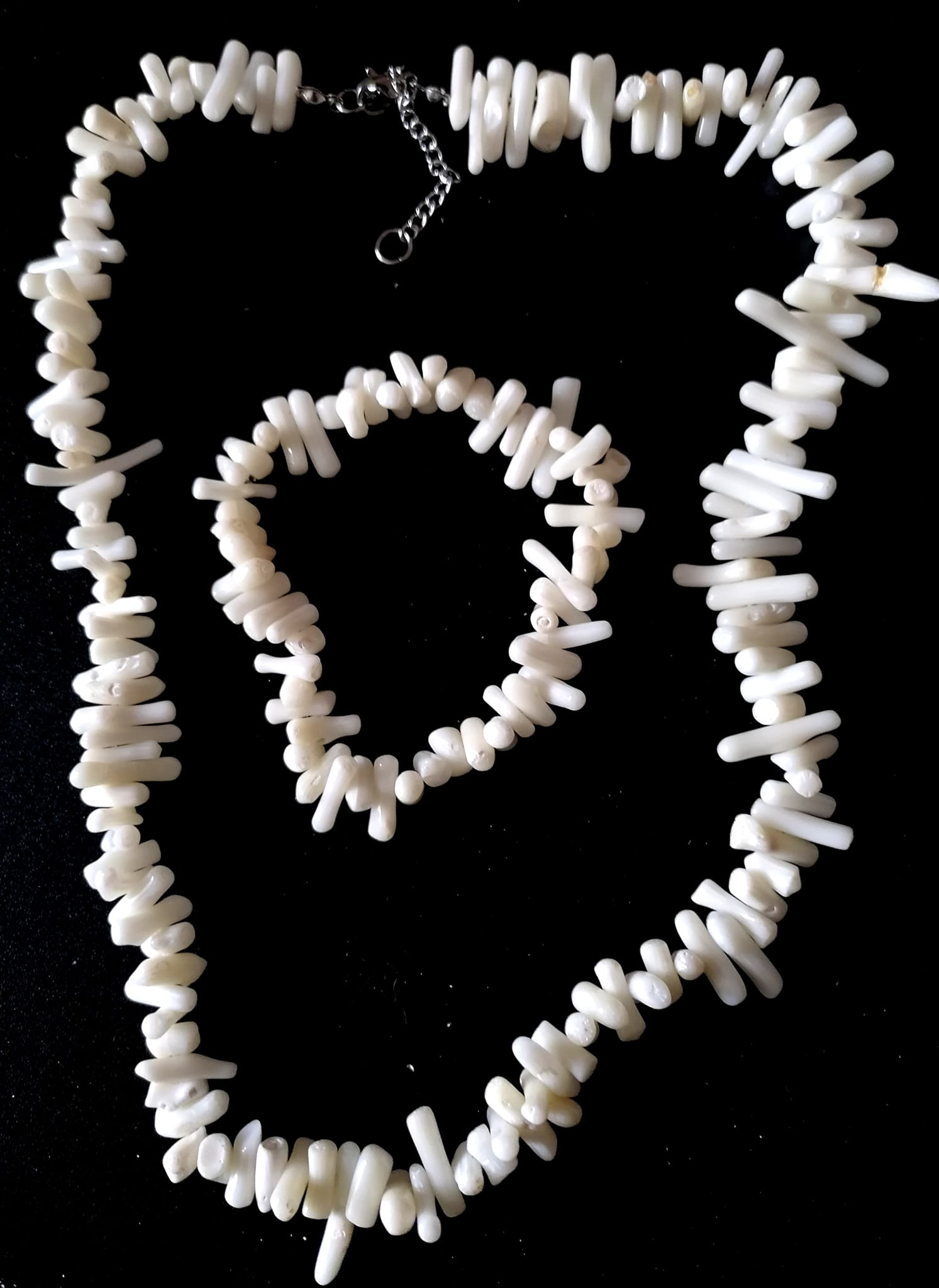 - Elegantní sada šperků z bílého větvičkového korálu – náhrdelník a náramek