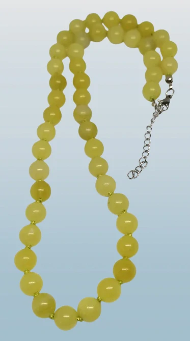 Náhrdelník z kuliček jadeitu světle zeleného, v jeho přírodní barvě. Kuličky pocházejí z Indie.