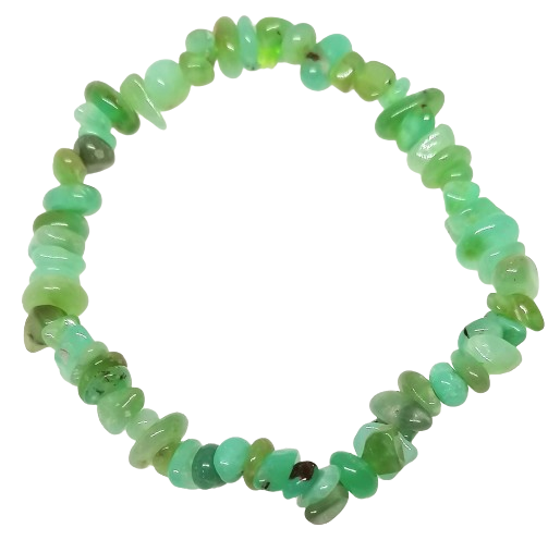 Objevte eleganci a harmonii s chrysoprasovým náramkem vyrobeným z vysoce kvalitních sekaných kousků minerálu v AA kvalitě. Každý kámen má jemnou zelenou barvu, která působí svěže a luxusně, a velikost kousků se pohybuje přibližně od 6 do 11 mm, což dodává náramku sofistikovaný a originální vzhled.