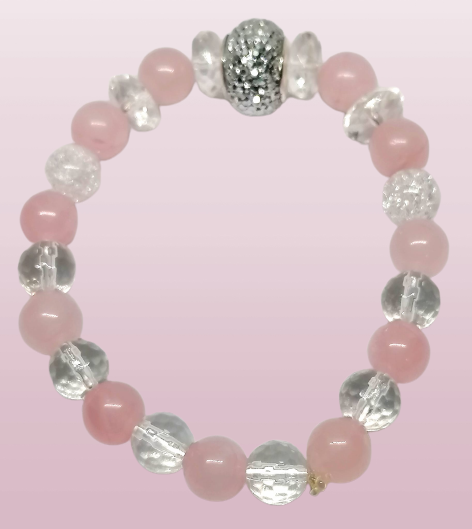 Luxusní náramek v AA kvalitě kamenů z křišťálu, různých tvarů a kuliček růženínu.