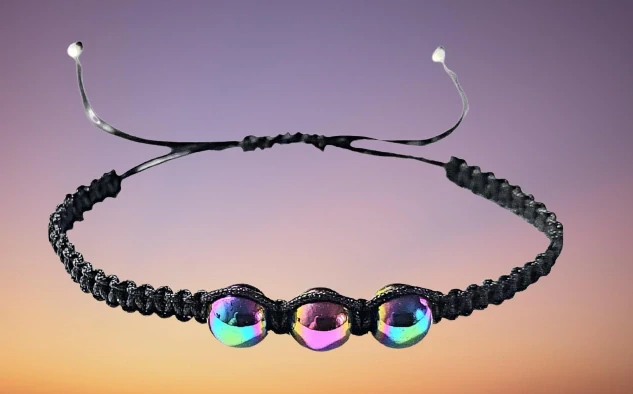Stylový Shamballa náramek s třemi kuličkami duhového hematitu (průměr cca 8 mm) kombinuje krásu a ochrannou energii minerálu. Díky posuvnému uzlu je náramek snadno nastavitelný a vhodný pro děti i dospělé.