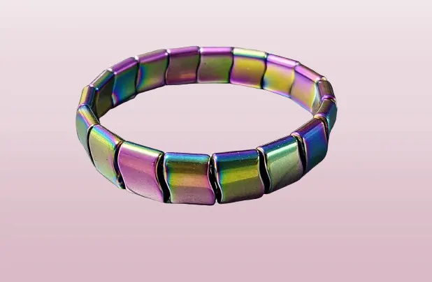 Náramek z duhového hematitu z obdélníkových částí.