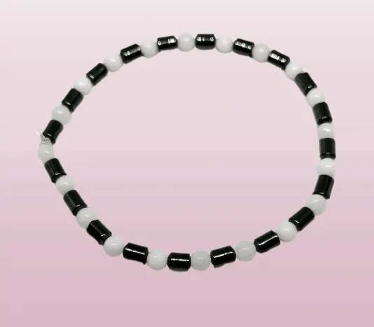 Hematitový náramek jemný, je navlečen z malých válečků a kuliček bílého jadeitu.