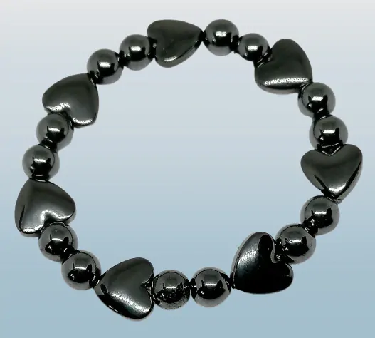 Náramek z hematitu. Srdíčka z hematitu jsou zmagnetizovaná. Velice zajímavá kombinace.