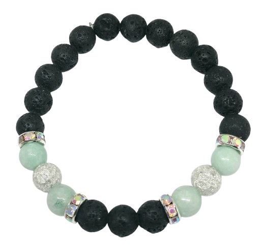 Elegantní náramek z přírodní lávy a jadeitu o velikosti kuliček 8 mm je stylovým doplňkem s hlubším významem. Kombinace matné černé lávy, jemně lesklého jadeitu a pukaného křišťálu vytváří harmonický celek, který zaujme na první pohled svou kontrastní, ale vyváženou energií.