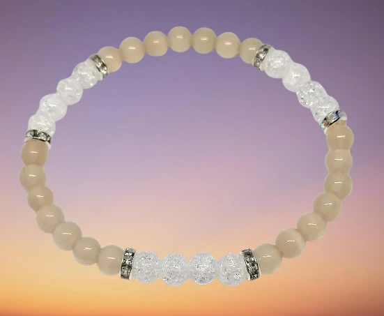 Ulexitový náramek v barvě béžové v kombinaci s pukaným křišťálem. Náramek je velmi zajímavý a hezky se třpití.